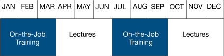 - „On-the-job training“ is integrated part of the studies, and is therefore a precondition to apply successfully