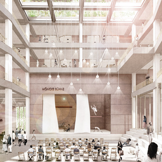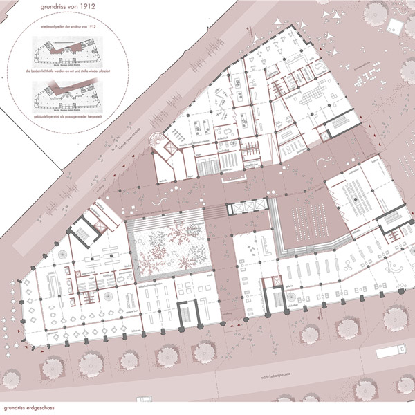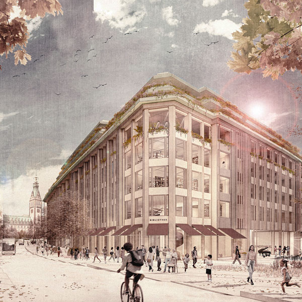 Der Entwurf untersucht das Potenzial der Umnutzung eines leerstehenden Kaufhauses an der Hamburger Mönckebergstraße, um die lokale Infrastruktur zu stärken und die Innenstadt auch nach Ladenschluss wiederzubeleben. Dem Leerstand soll durch innerstädtische Wohnnutzung und durch eine Verbesserung der Verweilqualität im öffentlichen Raum entgegengewirkt werden. Mit nur wenigen punktuellen Eingriffen kann ein vielseitiges Gebäude geschaffen werden, das eine ausgewogene Kombination aus gewerblicher, wohnlicher und öffentlicher Nutzung bietet. Die Vorzüge der Mönckebergstraße werden betont sowie neue belebende Elemente eingeführt. Unterschiedliche Nutzungen werden sinnvoll in Einklang gebracht, sodass Synergien untereinander entstehen und eine durchmischte Angebotsvielfalt entsteht.