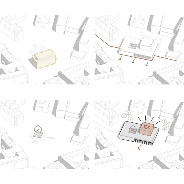 Entwurf einer Synagoge als neues jüdisches Zentrum im Hamburger Grindelviertel in direkter Nachbarschaft zur Talmud-Tora-Schule