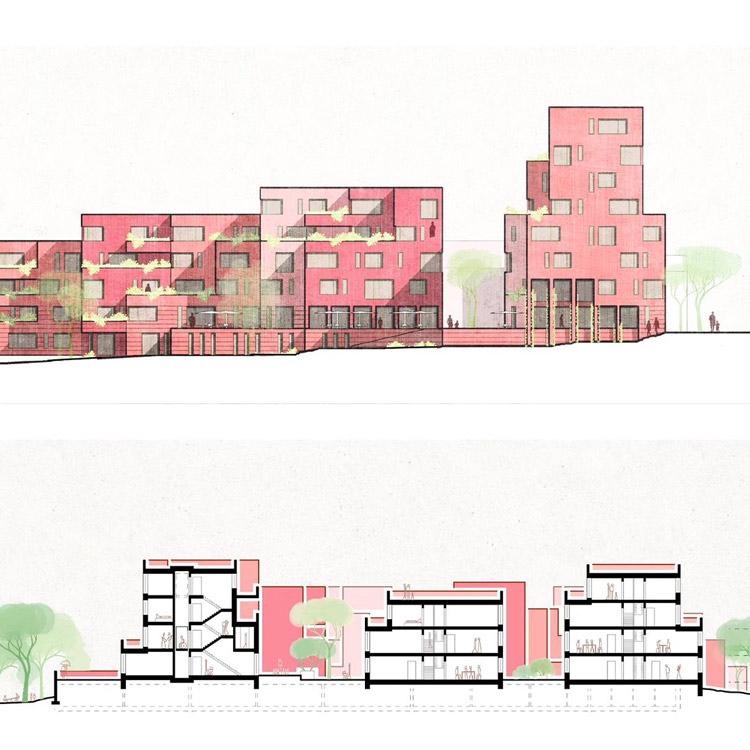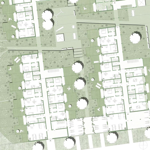 In Hamburg-Lohbrügge wird, in unmittelbarer Nähe zur Staatsgrenze zu Schleswig-Holstein, ein neues Quartier errichtet, das der weiterhin hohen Wohnungsnachfrage durch bezahlbaren Geschosswohnungsbau Rechnung trägt. Für das heute vorwiegend durch einen Gartenbaubetrieb genutzte Plangebiet ist eine Grünachse vorgesehen, die das Gebiet durchschneidet. Diese ist notwendig, um das vorhandene „Grüne Zentrum“ von Lohbrügge mit dem nördlichen Landschaftraum zu verbinden, damit die vorgesehenen ökologischen Effekte der Grünplanung wirksam bleiben (Kaltlufterzeugung, geringe Flächenversiegelung, Biodiversität etc.). Darüber hinaus ist die an das Plangebiet angrenzende Bebauung von einer Vielzahl unterschiedlicher Typologien geprägt, die vom Einfamilien-Reihenhaus über Wohnzeilen bis hin zu Punkthochhäusern reicht. Für die Entwicklung des Standortes ist somit auch eine ausführliche Beschäftigung mit den gängigen Wohnungsbautypologien erforderlich. Im Spannungsfeld zwischen den Herausforderungen eines verdichteten Wohnungsbaus, einer rentablen Projektentwicklung und einer effizienten Grünvernetzung werden städte- und hochbauliche Lösungen erarbeitet, die die Einzelinteressen in einem neuen grünen Quartier zusammenführen, welches den heutigen Ansprüchen an nachhaltiges Bauen gerecht wird.