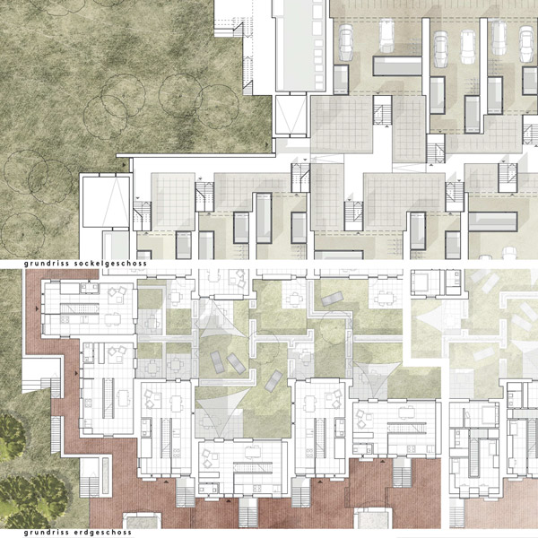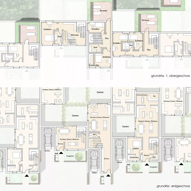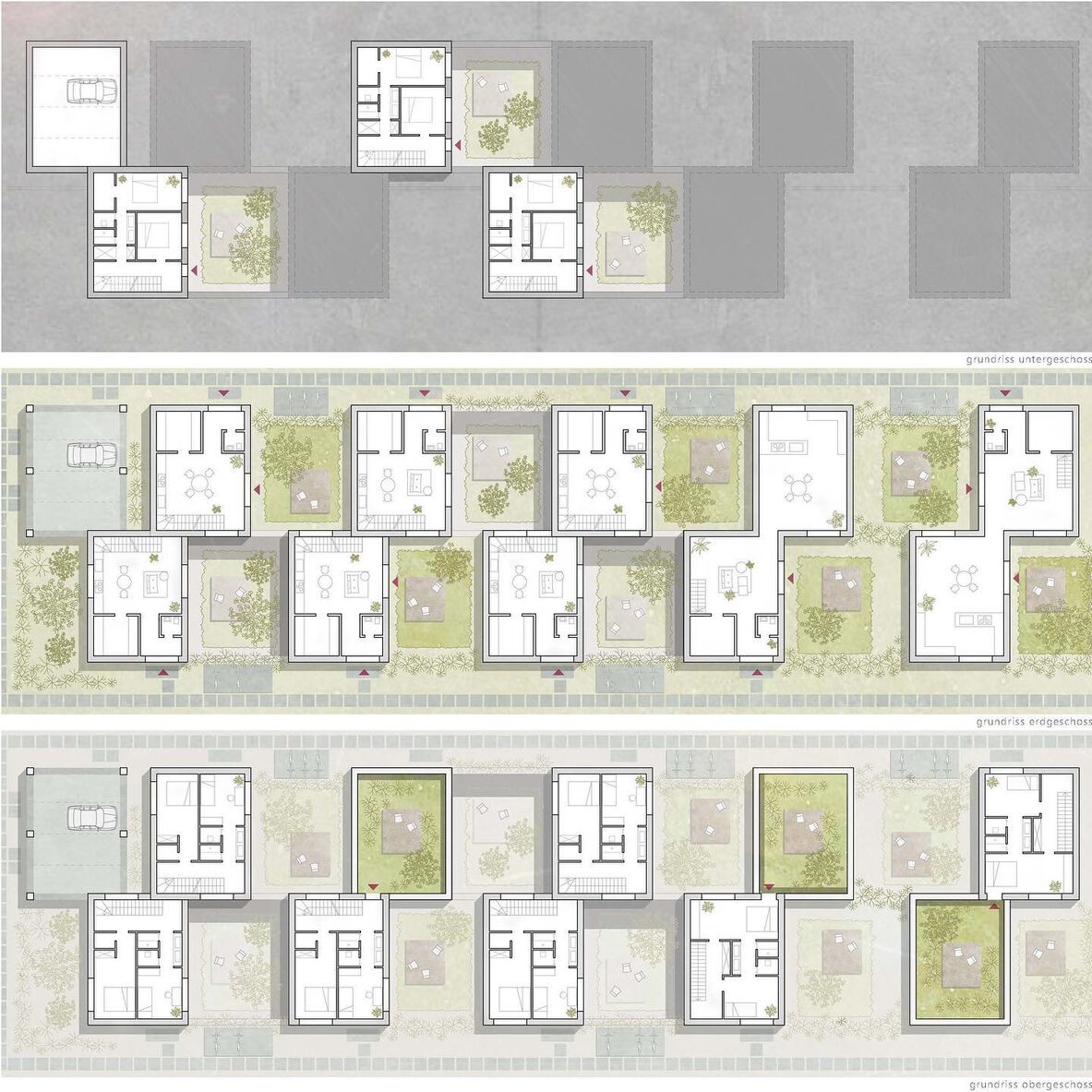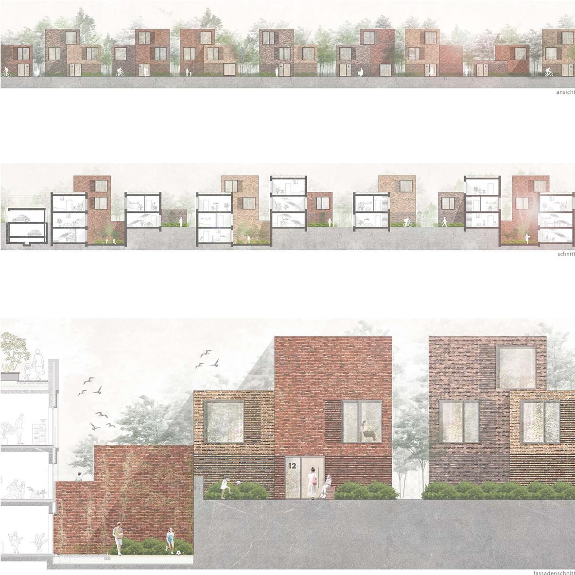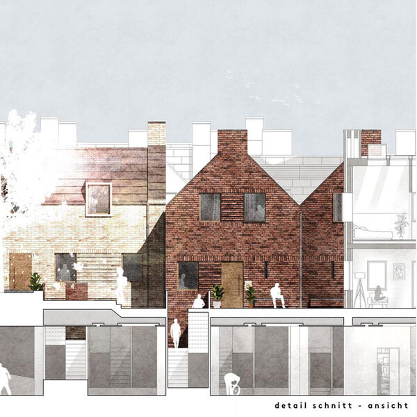 Das Entwurfsprojekt befasst sich mit der Fragestellung, wie sich die Qualitäten von ‚Einfamilienhäusern‘ auf flächen- und ressourcensparende Weise neu interpretieren lassen. Hintergrund ist die Auslobung des BDA Hamburg Studienpreises 2021/22.