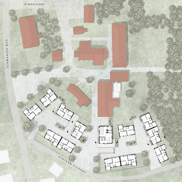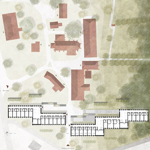 Die Aufgabe reicht somit von einer räumlich und funktional ansprechenden Reorganisation und Arrondierung des Areals über eine hochwertige Gestaltung des Stadtraums und der Silhouette des Ensembles hin zu einer typologischen Weiterentwicklung einer Wohnstiftung.