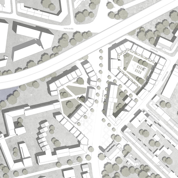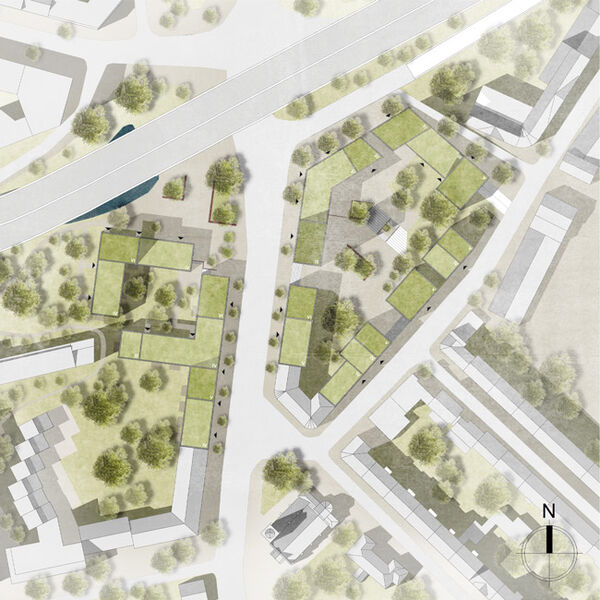 Durch bauliche Fassungen, Nachverdichtung, Überlegungen zur Nutzungsmischung und eine konzertierte Gestaltung der Freiräume ist der derzeit von großen Verkehrsschneisen geprägte Zwischenort in ein Urbanes Gebiet mit hoher räumlicher Qualität und einer spezifischen Identität zu transformieren.