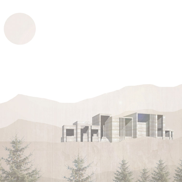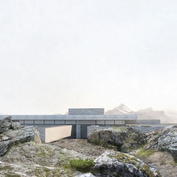In den Hochalpen oberhalb der Baumgrenze befindet sich der spektakuläre Bauplatz für ein besonderes Refugium, ein Ort der Kontemplation, der Kommunikation und der Ruhe. Gefordert ist der Entwurf einer 'Alpen Lodge', welcher der besonderen und dramatischen Lage kurz unterhalb des Gipfels eines „Dreitausenders“ Rechnung trägt. Die Baustruktur klammert, hängt und nistet sich in und an die schroffe Felsstruktur.