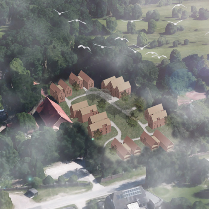 Die Gruppe 'Urbanes Dorf' möchte gemeinschaftlich und kooperativ im ländlichen Raum und gleichzeitig in der Nähe zur Metropole Hamburg ein Wohnprojekt mit Möglichkeit der Selbstversorgung errichten. Die Gebäude sollen hierbei möglichst nachhaltig und energieeffizient gebaut werden, beispielsweise durch den Einsatz von Regenwasseraufbereitungs- und Solaranlagen. Innovative Bauformen im Passivhausstandard bei vergleichsweise geringen Baukosten und hervorragender Bauökologie stehen im Fokus. Als Baustoffe sind vorwiegend regionale Baustoffe mit einer guten Energiebilanz vorzusehen. Die Bauformen und Anordnungen der Gebäude enthalten gemeinschaftsfördernde Elemente wie z.B. einladende Eingangsbereiche, Laubengänge und Verweilplätze.