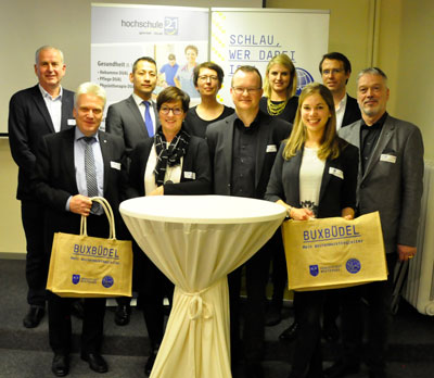 Aus unterschiedlichen Branchen kamen Besucher zum ersten Buxtehuder Gewerbe-Forum in die hochschule 21. Im Anschluss hatten die Teilnehmer die Gelegenheit bei Snacks und Getränken eigene Erfahrungen untereinander auszutauschen oder sich in einem persönlichen Gespräch mit den Referenten weiter zu informieren.