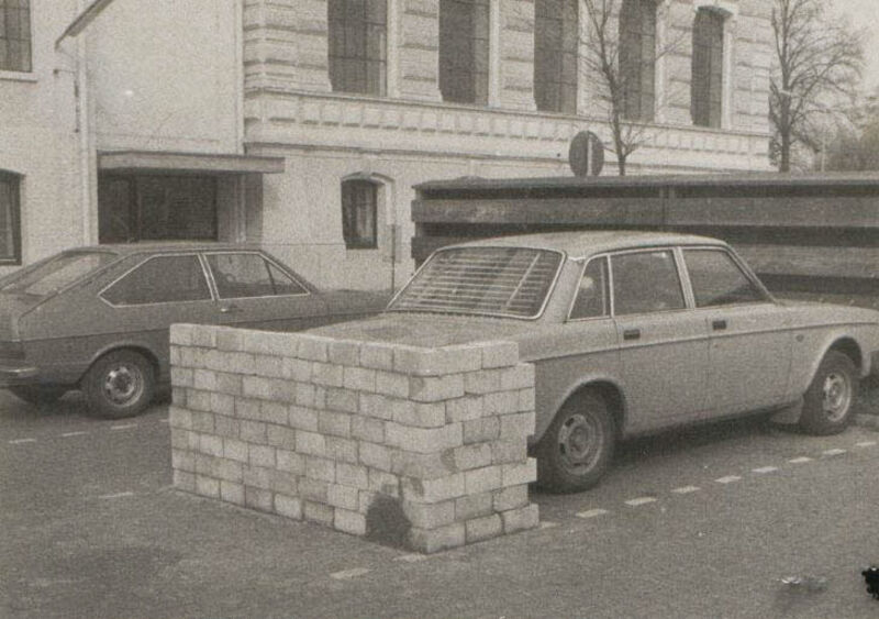 Das Abschlusssemester A6 (1976 – 1979) erinnert sich neben dem Errichten des Obelsiken vor der Hochschule noch an einen weiteren „Schildbürgerstreich“. Von einer Semesterfahrt im Frühjahr 1979 zurückkommend, sollte Professor Mohr (Tragwerkslehre) auf dem Parkplatz der Schule sein Auto nicht mehr fortbewegen können – so die Idee. Sein Volvo eingemauert, an Heimfahrt nicht zu denken.